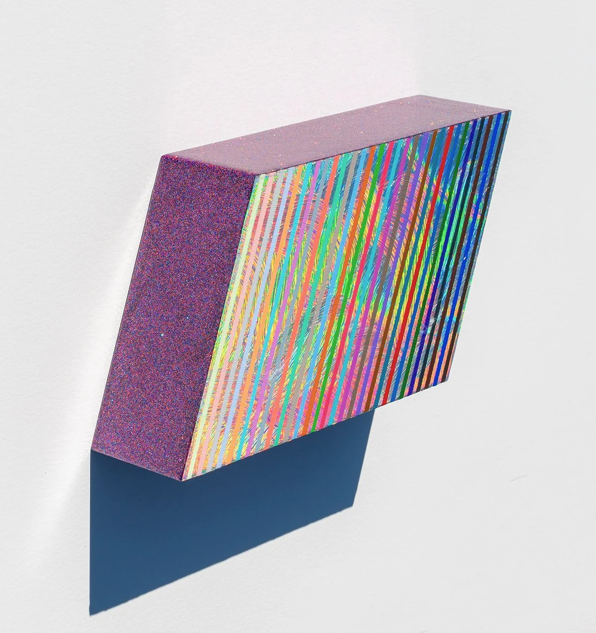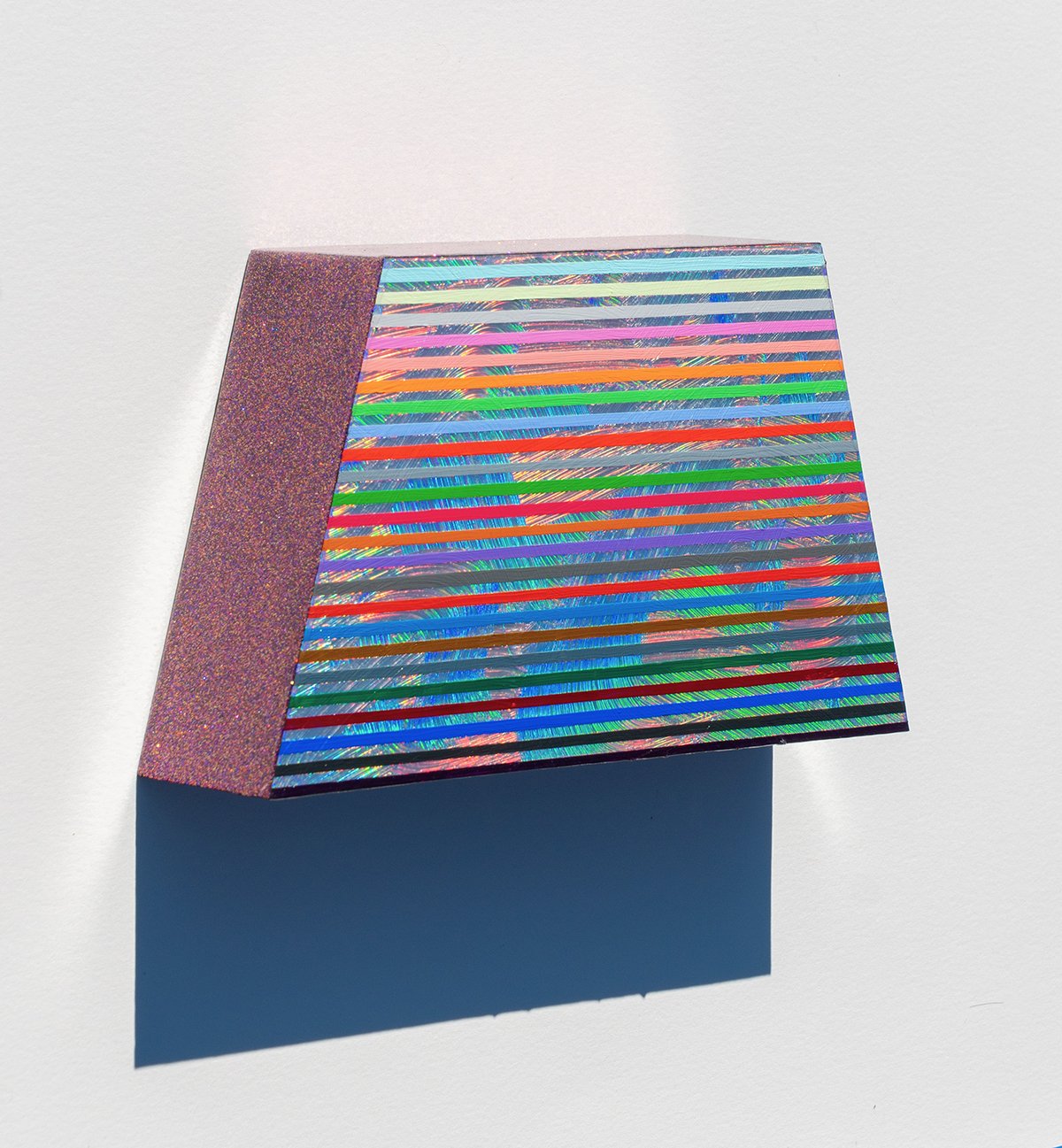Victory Laps, 2026, 5 3/8” x 9 6/8” x 2 4/8”, Acrylic, automotive grade metal flake (glitter), and holographic vinyl on panel